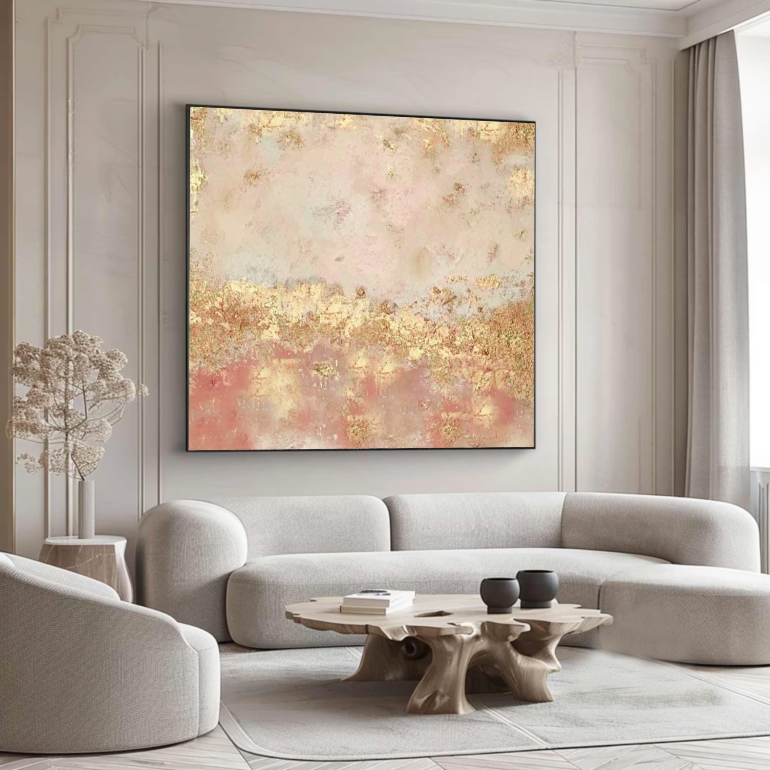 Transform your space with timeless elegance. This original handmade oil painting is a masterful blend of texture, color, and sophistication — designed to elevate any room into a gallery-worthy haven. Featuring soft, harmonious hues enhanced with delicate gold accents, this artwork brings a warm yet modern ambiance to luxury interiors.
