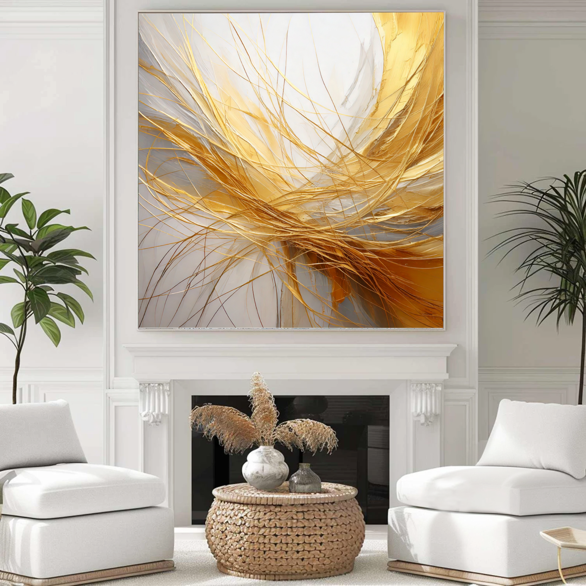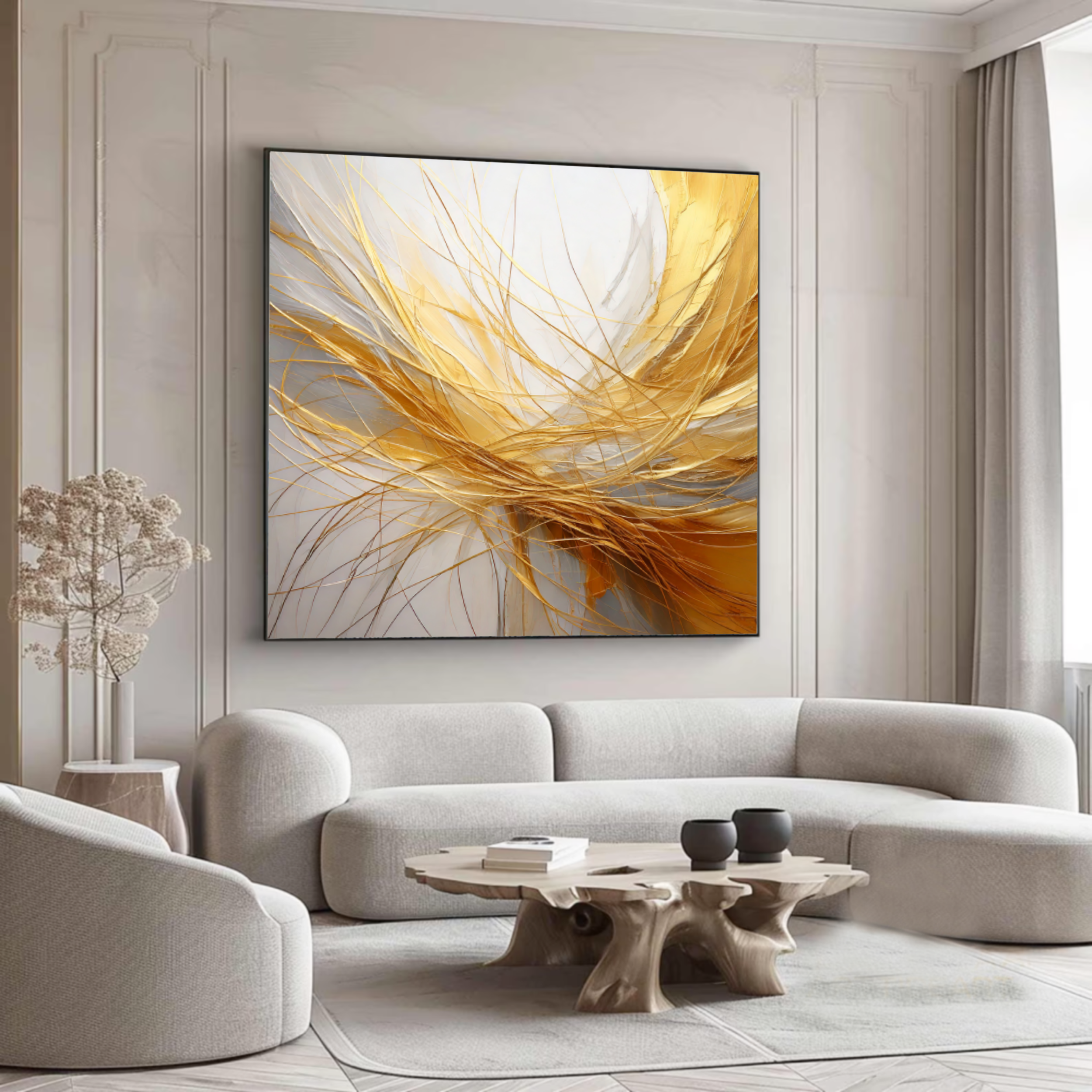 "Golden Reverie" is a museum-quality statement piece, perfect for luxury living rooms, modern offices, upscale hotels, boutique lobbies, or refined home interiors. Its bold yet calming composition complements a wide range of decor styles, from contemporary and minimalist to glamorous and eclectic.