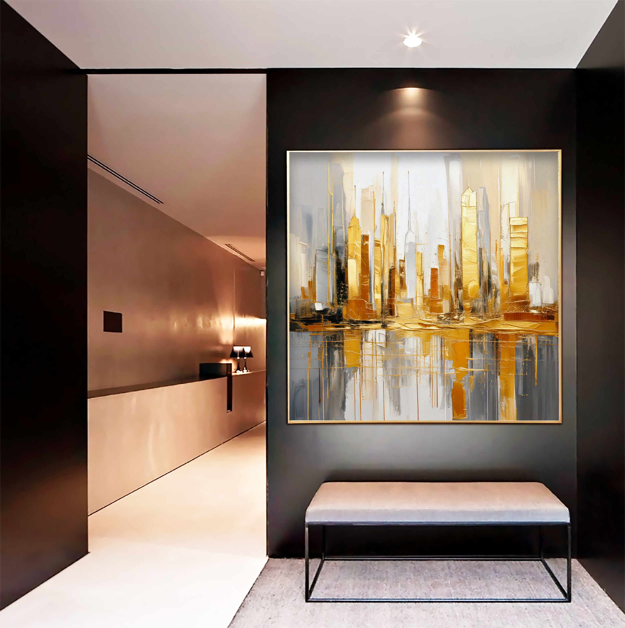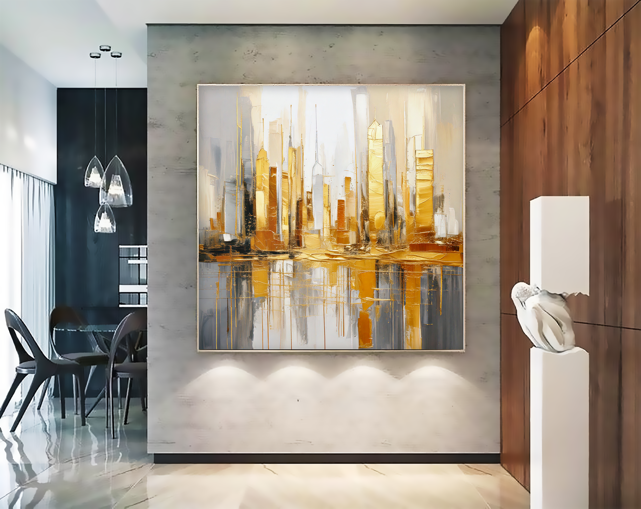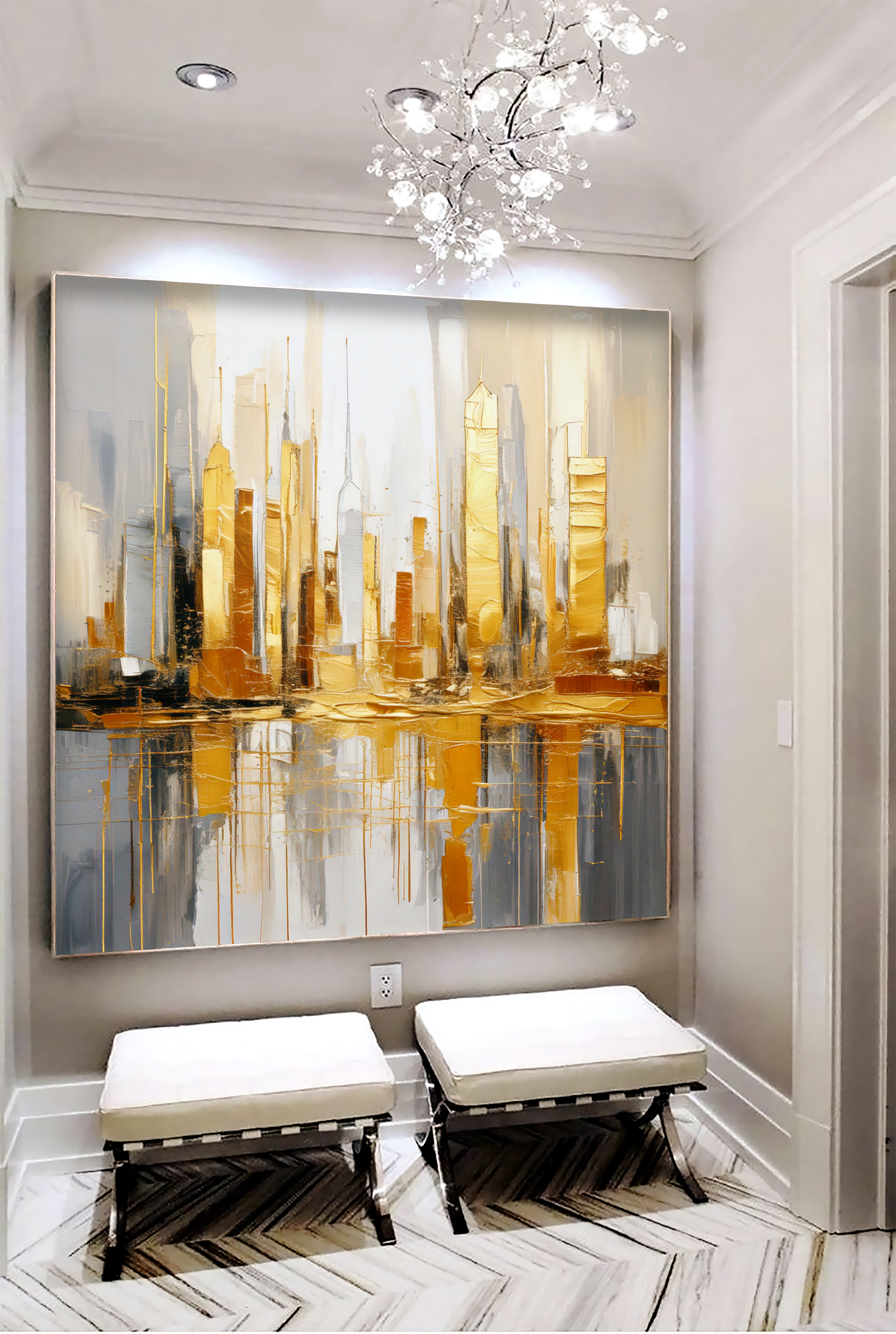 Add a radiant, skyline-inspired masterpiece to your space. Golden Reverie is more than a painting—it’s an invitation to experience the beauty of modern elegance, every day.
