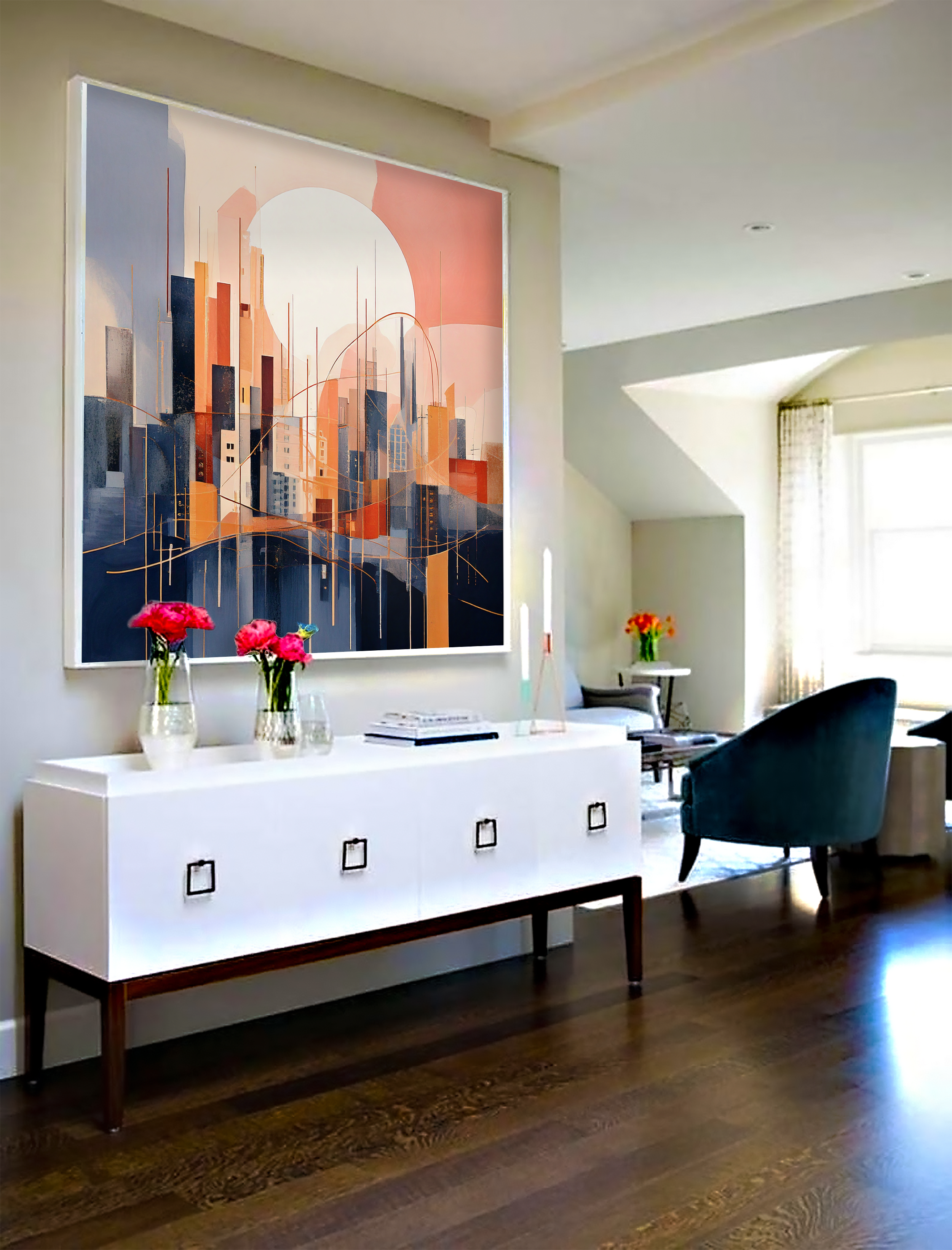 Whether you're curating a refined residential interior or transforming a corporate space, Sun Over Concrete Dreams is more than just wall décor – it’s a conversation piece, a modern masterpiece, and a portal to a city imagined in color and emotion.